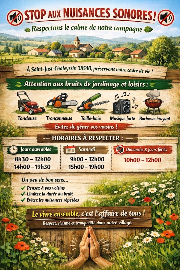 Nous rappelons à tous l’importance de respecter les horaires autorisés pour les activités bruyantes, notamment en soirée, tôt le matin, ainsi que les dimanches et jours fériés.