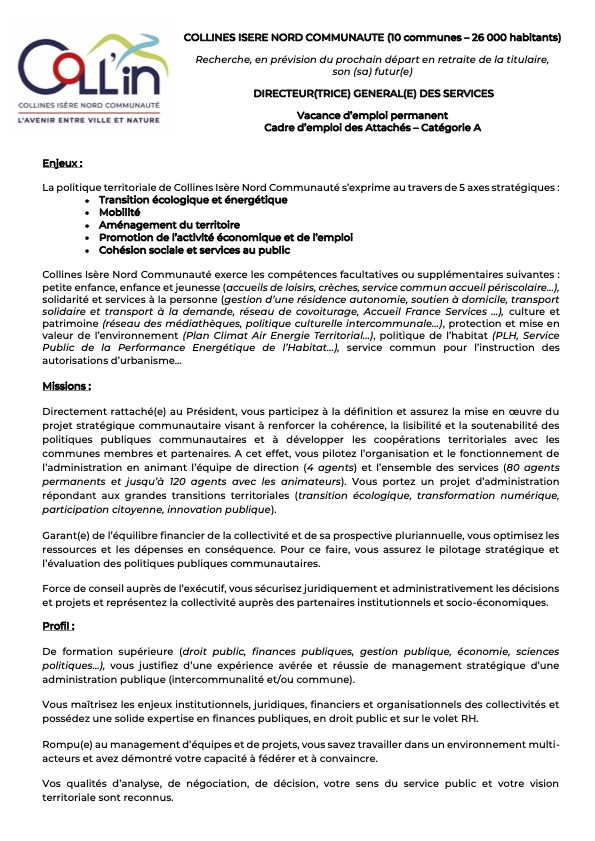 LA COMMUNAUTE DE COMMUNES COLLINES ISERE NORD COMMUNAUTE RECHERCHE :